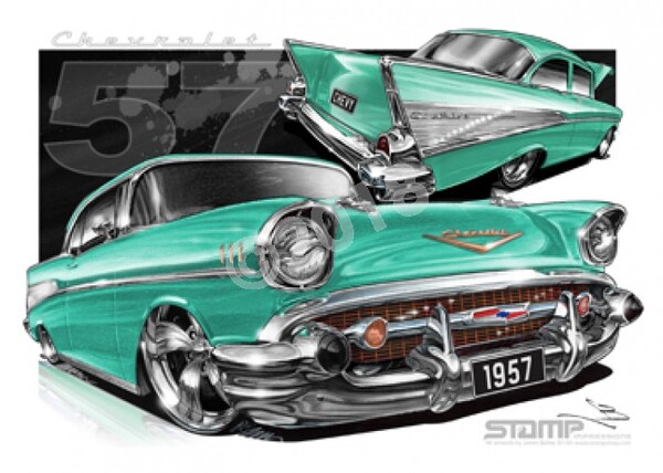Classic 57 CHEVY TROPICA TURQUOISE A2 FRAMED PRINT (C004H)